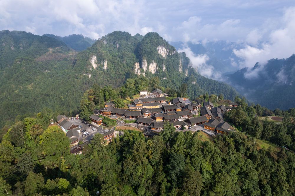 这是2023年10月10日拍摄的湖南省湘西土家族苗族自治州花垣县双龙镇十八洞村(无人机照片)。新华社记者陈思汗摄