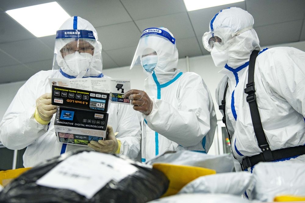 2021年2月6日,新疆阿拉山口海关工作人员在抽检中欧班列货品。新冠肺炎疫情发生以来,中欧班列承接空运、海运转移货源,实现逆势增长。