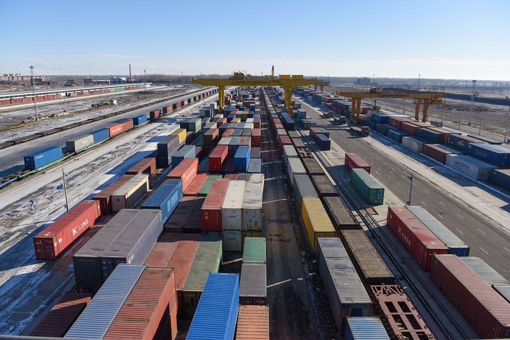 中欧班列(乌鲁木齐)集结中心一角。