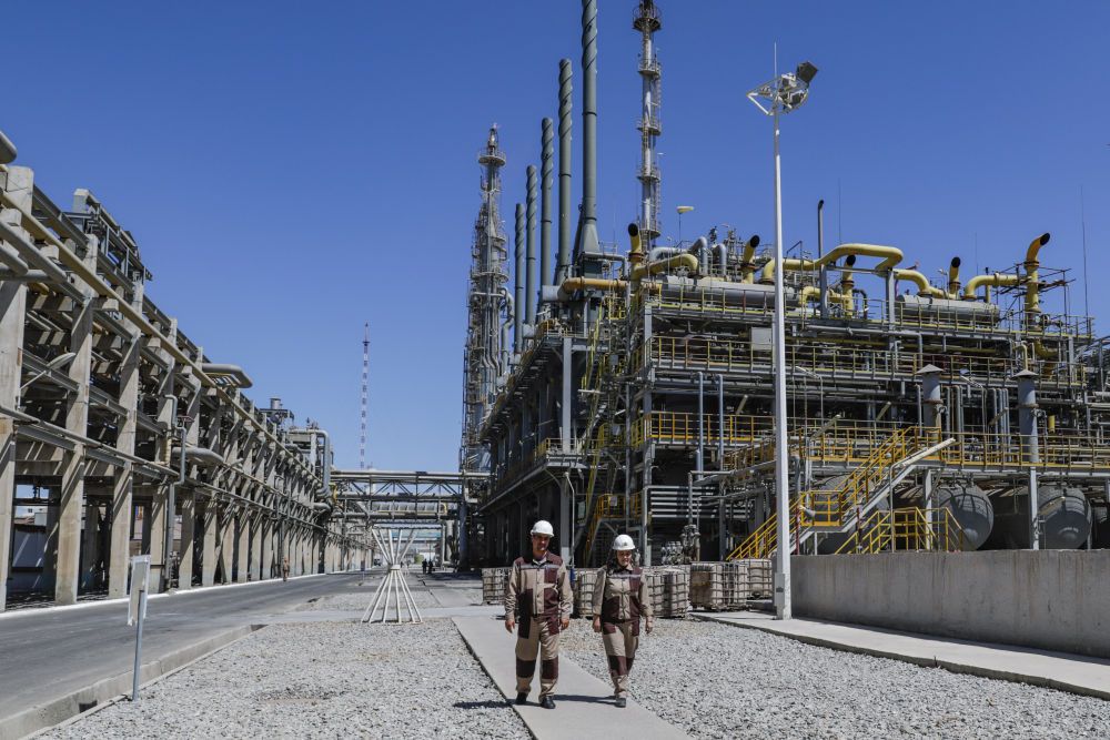 这是去年8月18日在乌兹别克斯坦纳沃伊市拍摄的纳沃伊氮肥股份公司聚氯乙烯工厂。
