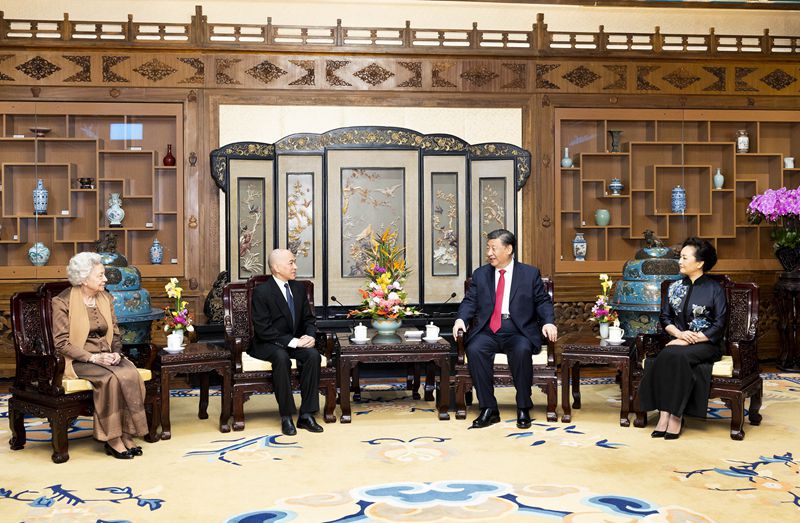 2月24日,国家主席习近平和夫人彭丽媛在钓鱼台国宾馆养源斋亲切会见柬埔寨国王西哈莫尼和太后莫尼列。