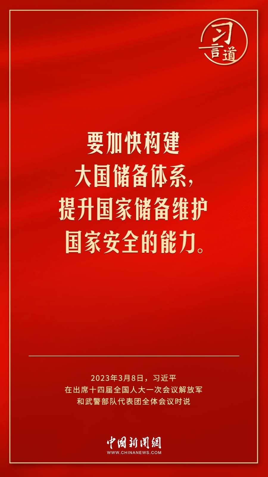 中共中央总书记、国家主席、中央军委主席习近平8日下午在出席十四届全国人大一次会议解放军和武警部队代表团全体会议时说——