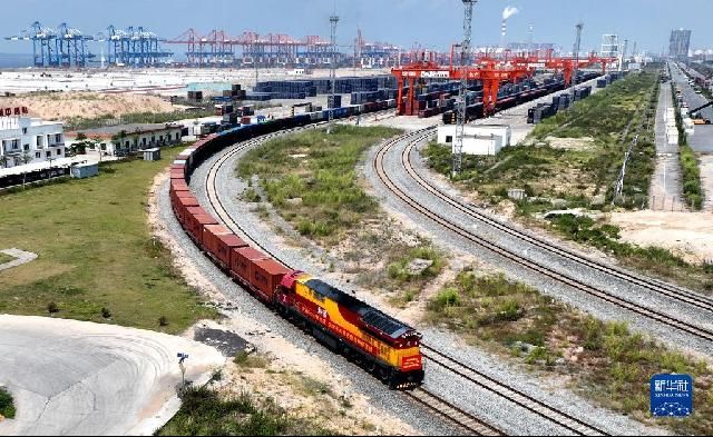 这是从广西钦州港发出的首趟“北部湾—西藏”班列(2022年9月17日摄,无人机照片)。新华社记者 张爱林 摄