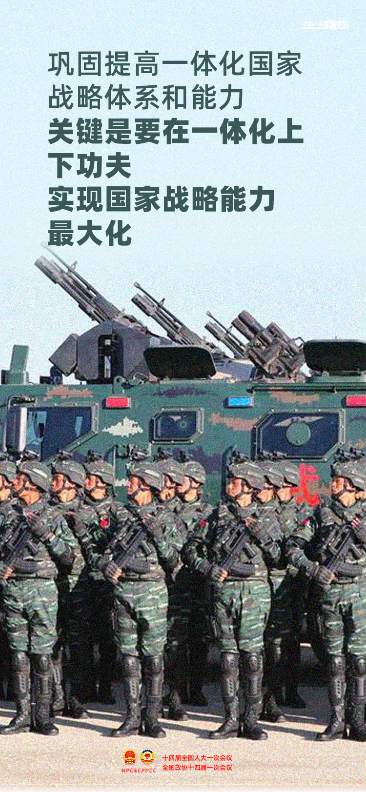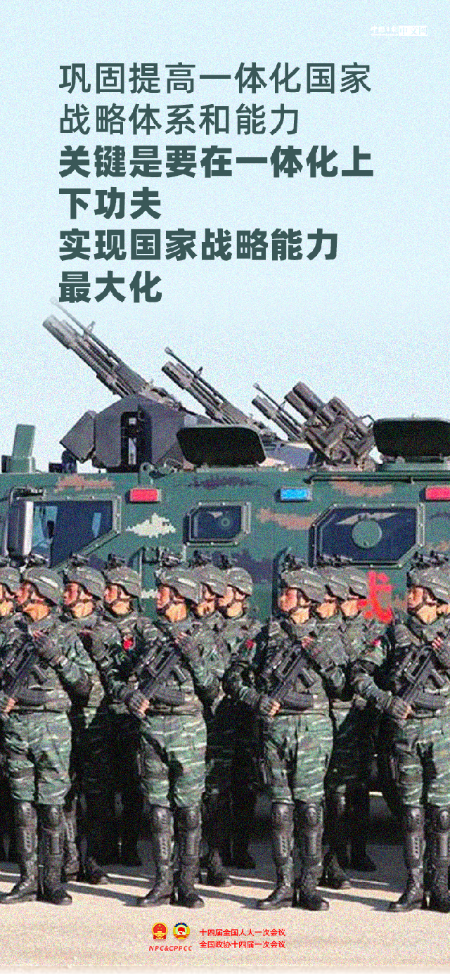 中共中央总书记、国家主席、中央军委主席习近平8日下午出席十四届全国人大一次会议解放军和武警部队代表团全体会议。在6位代表发言后,习近平发表重要讲话,重点围绕巩固提高一体化国家战略体系和能力提出要求。巩固提高一体化国家战略体系和能力怎么做?一起来看。