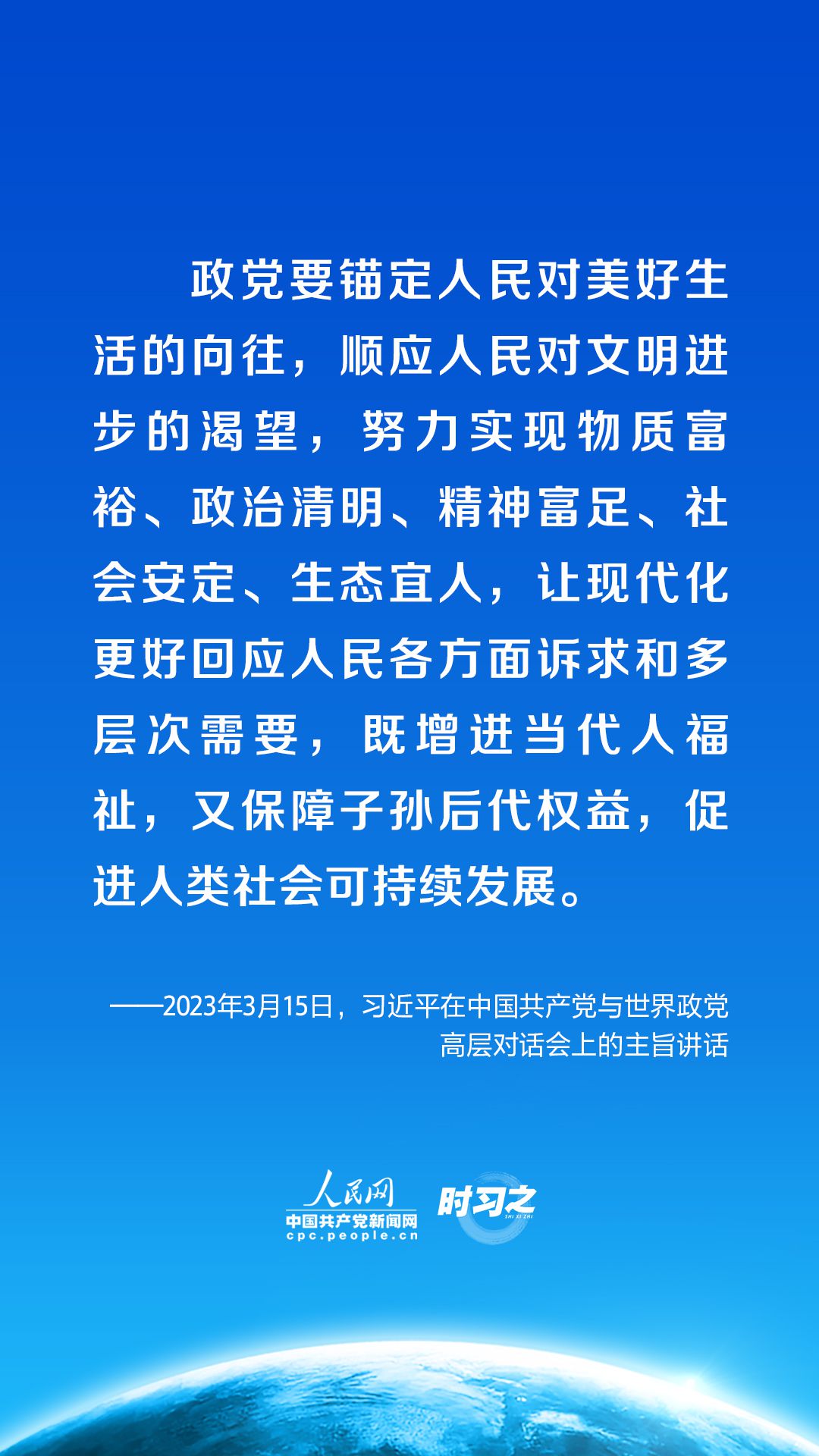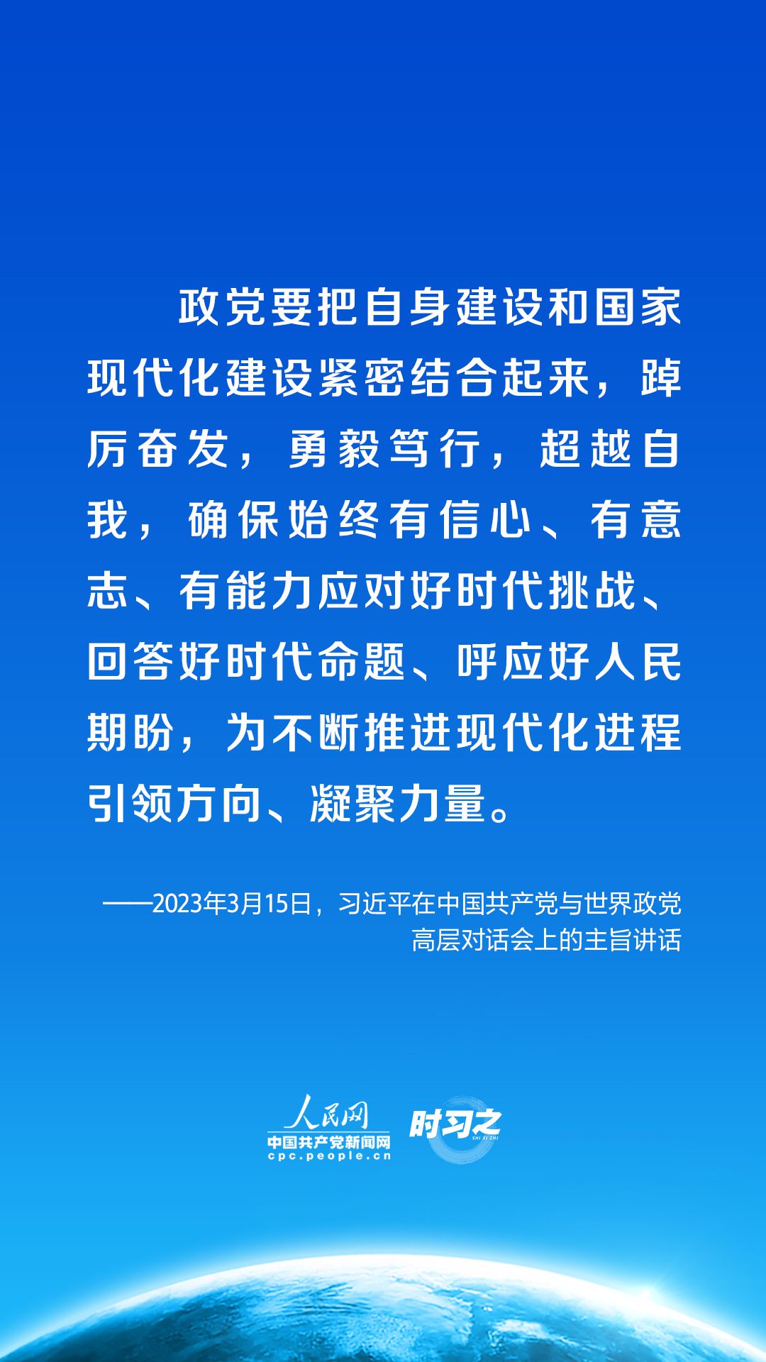 3月15日,中共中央总书记、国家主席习近平在北京出席中国共产党与世界政党高层对话会,并发表题为《携手同行现代化之路》的主旨讲话。讲话中,习近平呼吁政党担起这些责任。
