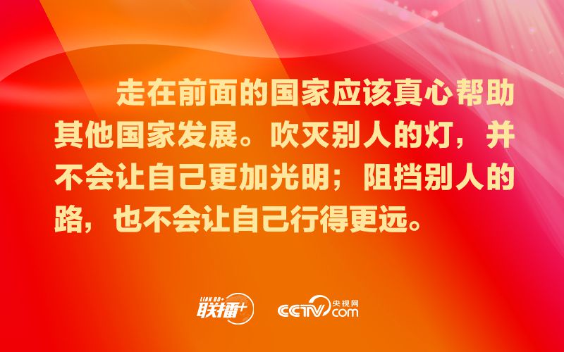 要坚持共享机遇、共创未来,共同做大人类社会现代化的“蛋糕”,努力让现代化成果更多更公平惠及各国人民,坚决反对通过打压遏制别国现代化来维护自身发展“特权”。