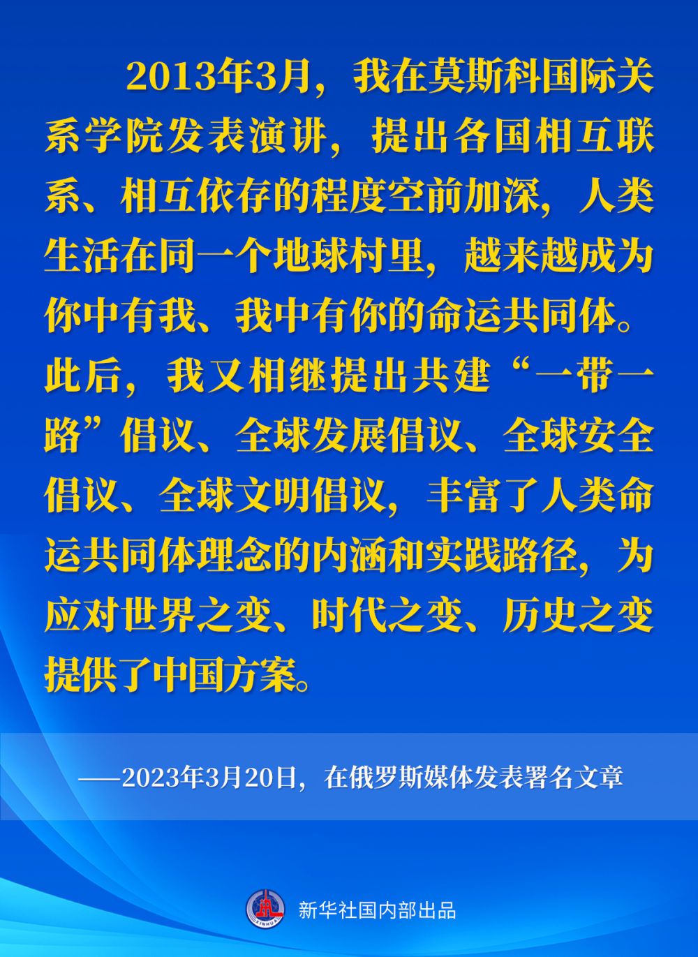 2013年3月,习近平主席在出访俄罗斯期间提出构建人类命运共同体理念,为应对全球挑战、共创人类美好未来提供中国方案。十年来,国际局势风云变幻,人类命运共同体理念的影响力、感召力愈发凸显,为携手建设更加美好的世界凝聚广泛国际共识。