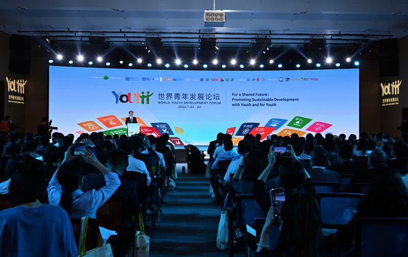 △2022年7月21日,世界青年发展论坛在北京开幕。100多位中外嘉宾和100多个国家约2000名青年代表通过线上线下方式参加会议。