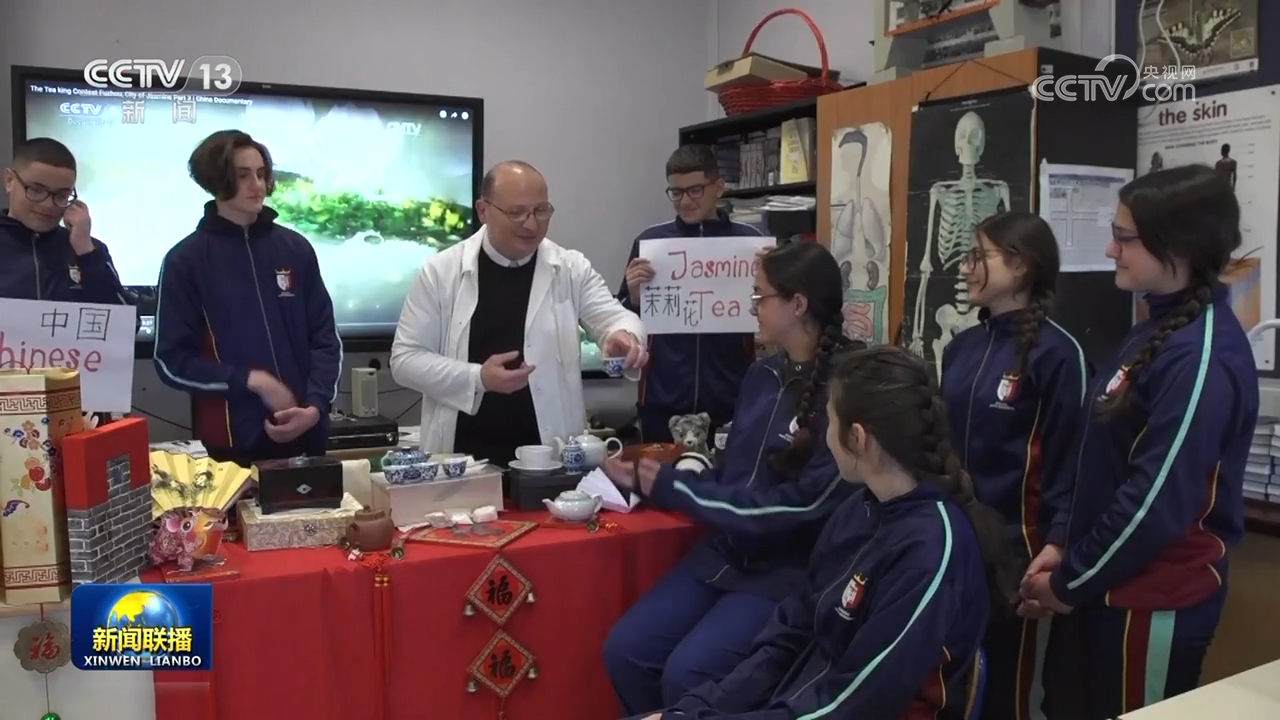 青花瓷杯,茉莉花茶,马耳他圣玛格丽特中学的“中国角”,同学们在沏茶和品鉴中体验中国茶道。这一小小“中国角”,已成为当地学生了解中国的一扇窗。创办者阿佐帕迪老师,去年代表师生们给习近平主席写信,他引用《礼记》中“圣人耐以天下为一家”,表达对“人类命运共同体”理念的认同。