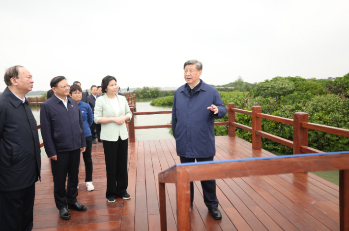 10日,习近平总书记在广东省考察调研。他首先来到湛江市,先后考察了国家863计划项目海水养殖种子工程南方基地、麻章区湖光镇金牛岛红树林片区、徐闻港、环北部湾广东水资源配置工程,了解当地发展海洋渔业、加强红树林保护、提升交通基础设施互联互通水平、推动广东海南相向发展、优化水资源配置等情况。