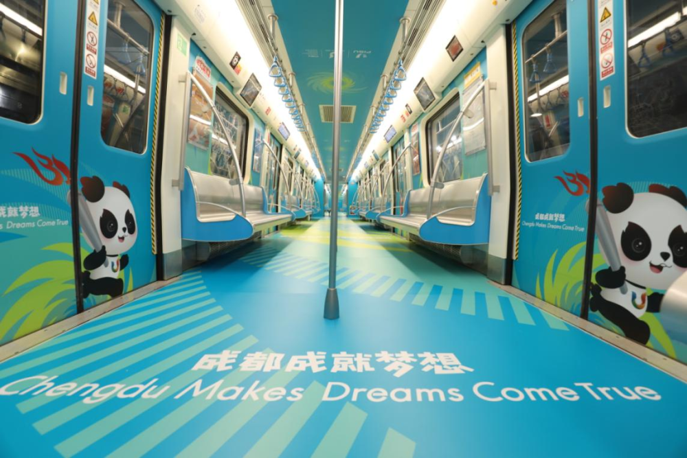 大运会倒计时100天主题列车上,“成都成就梦想”清晰醒目。图片来自成都大运会官方网站