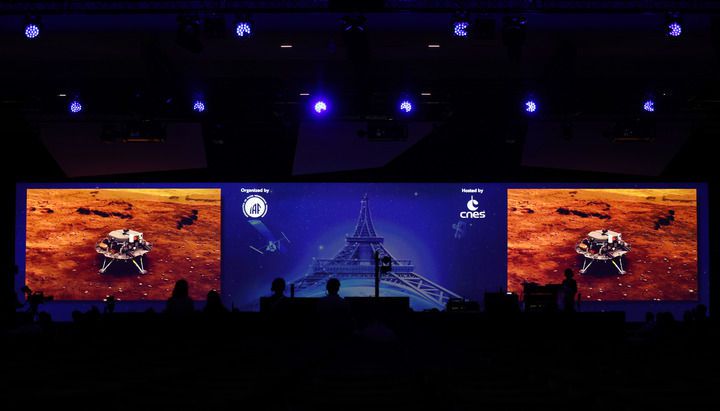 这是2022年9月21日在法国巴黎拍摄的天问一号火星探测团队成果介绍会现场。新华社记者 高静 摄