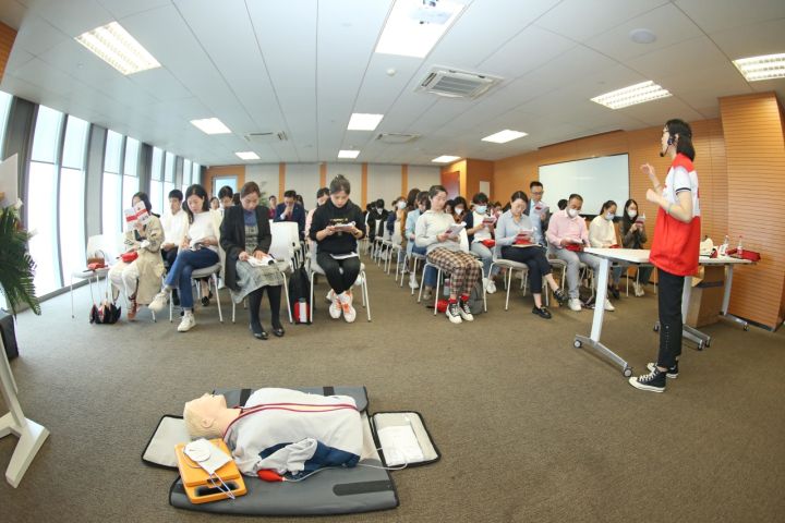 最近,救护培训还延伸到了城市的楼宇。4月14日,杭州首个“红十字云端急救课堂”落户钱江国际时代广场2号楼30楼,百米高空的红十字急救教室为楼宇金领白领带去不一样的急救学习体验。