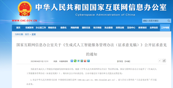 今年4月11日,国家网信办也出手,为生成式人工智能“立规矩”,公布了《生成式人工智能服务管理办法(征求意见稿)》,其中提到,AI内容必须真实准确,还明确提到,禁止非法获取、披露、利用个人信息和隐私、商业秘密。
