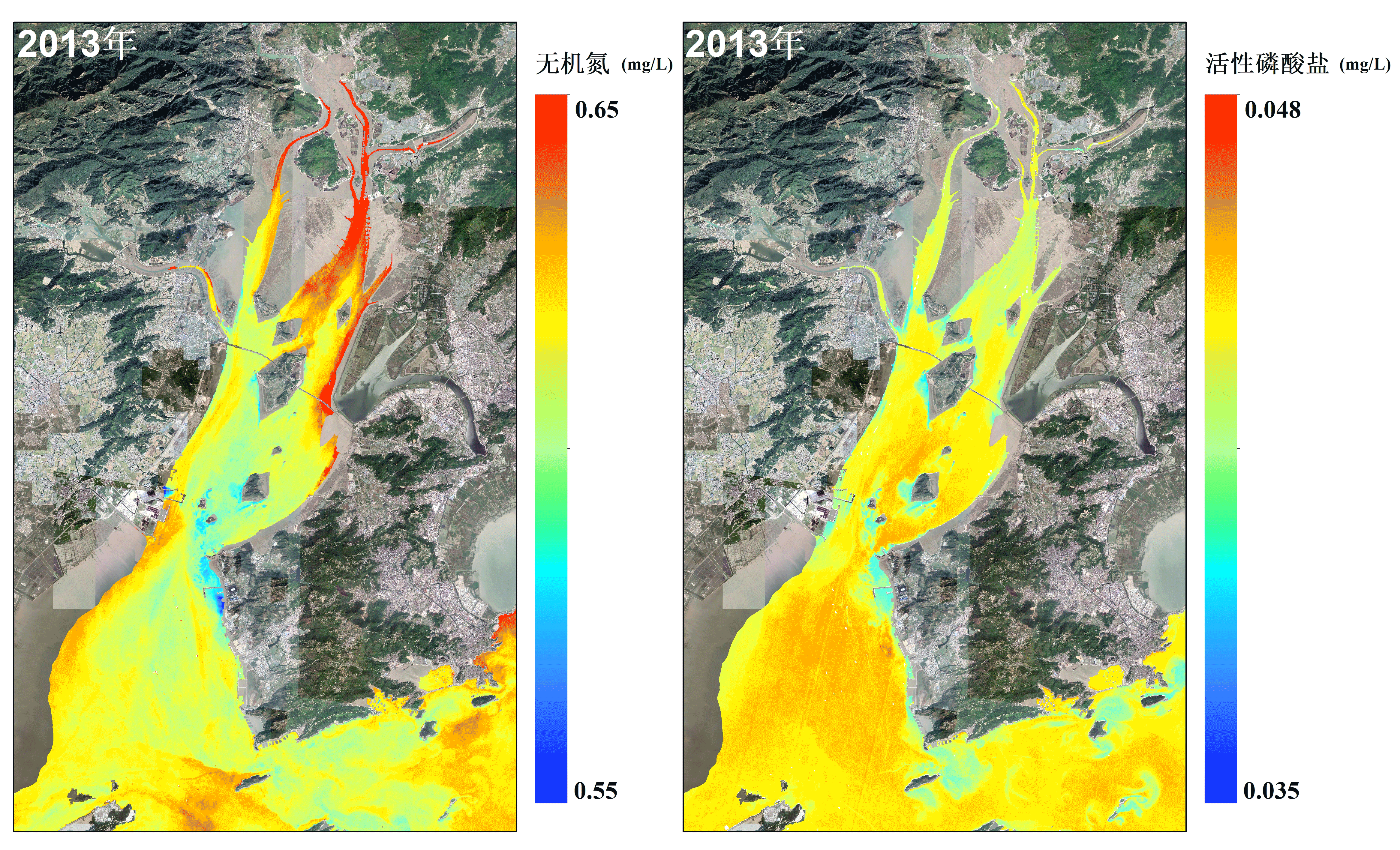 (2013-2020年冬季乐清湾营养盐浓度变化动态图,由浙江省生态环境监测中心遥感监测研究所提供)