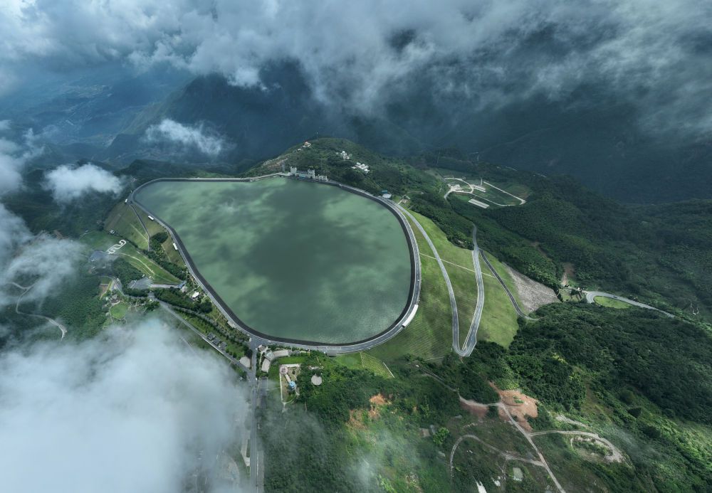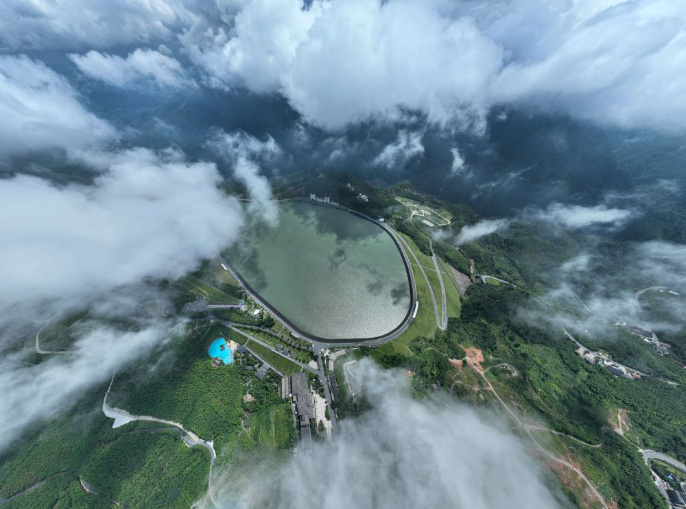 安吉县天荒坪抽水蓄能电站(8月3日摄,无人机照片)。该电站总装机容量180万千瓦,具有低碳清洁、灵活调节的特点,为华东电网储能调峰发挥作用。新华社记者 翁忻旸 摄