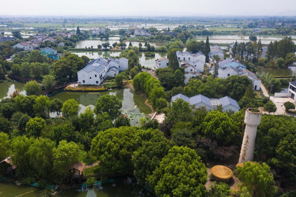 湖州市吴兴区东林镇泉益村通过全域土地综合整治建设美丽乡村,打造具有水乡特色的绿色生态旅游村(8月14日摄,无人机照片)。新华社记者 徐昱 摄