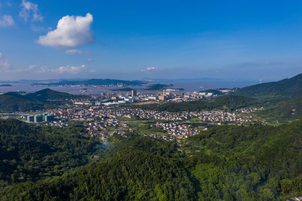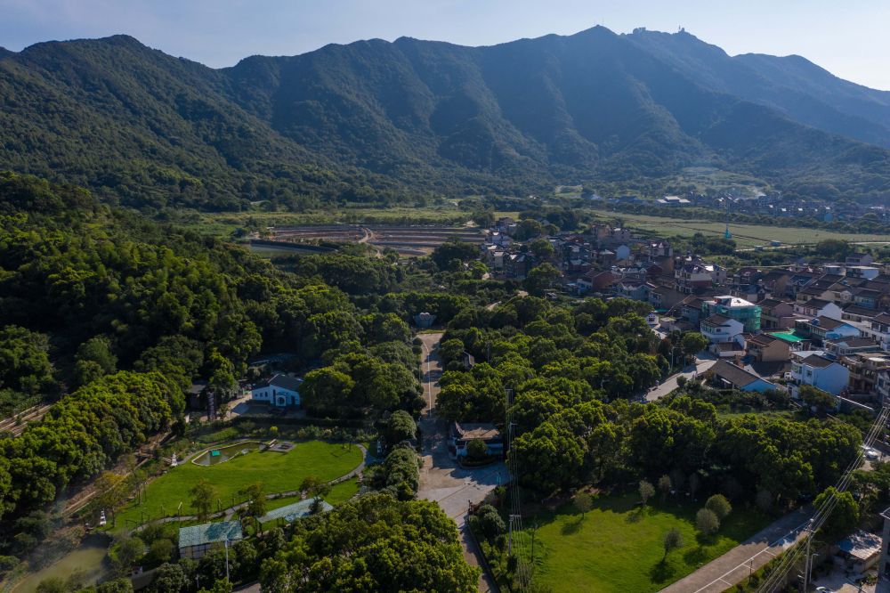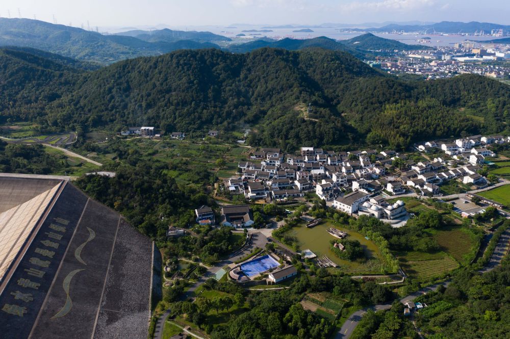 空中俯瞰舟山市定海区新建村(8月7日摄,无人机照片)。新建村被评为中国最美休闲乡村、国家级美丽宜居示范村、全国首批森林乡村、全国乡村旅游重点村等荣誉称号。新华社记者 徐昱 摄