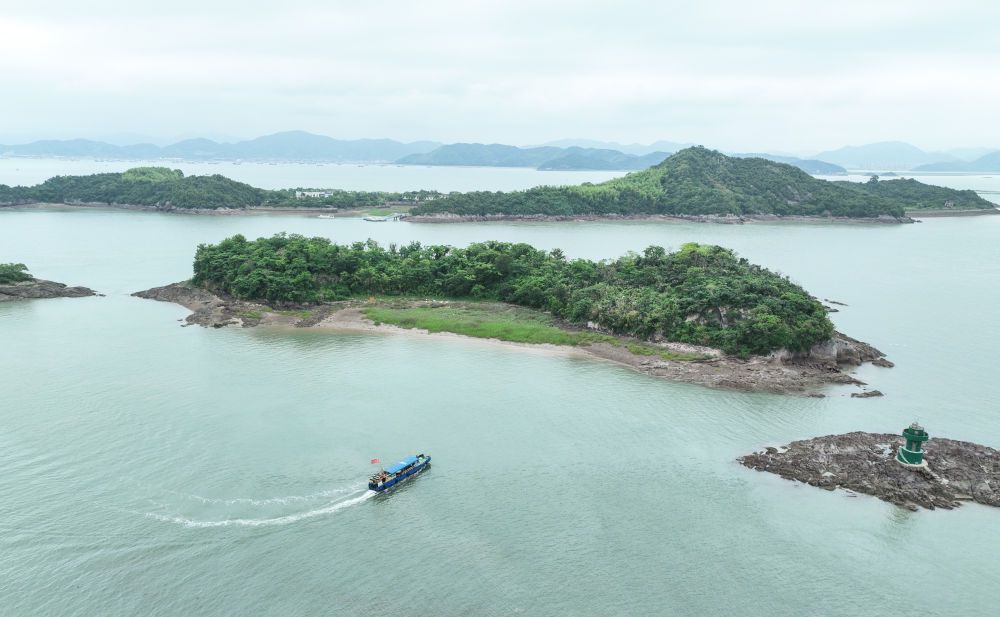 宁海湾海岛护鸟队员在海岛间巡逻(6月13日摄,无人机照片)。浙东宁海湾是重要的鸟类栖息地,位于湾区的强蛟镇组建了由渔民、民警、党团志愿者等组成的海岛护鸟队,看护这片鸟类乐园。新华社记者 翁忻旸 摄