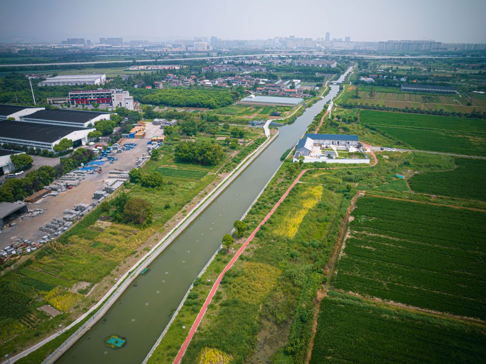 宁波市江北区西大河景色(8月11日摄,无人机照片)。近年来,宁波市江北区通过堤岸整治、河道清淤、建立微循环系统等方式,提高了西大河的水体自净能力和水生态环境。新华社记者 江汉 摄