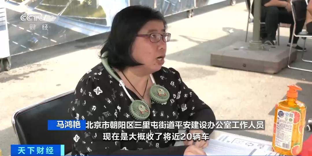 北京市朝阳区三里屯街道平安建设办公室工作人员 马鸿艳:办了三次活动,大概收了近20辆车。业主过来询问的时候说违规车要开到年底,我们这个活动也会再陆陆续续开到年底。