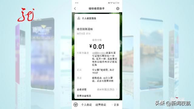 有一个人给我转了0.01元,备注是抖音号,他说别人给你转1分钱,我给你转2分钱。我就问他在哪儿看见的呀,随后他给我截个图过来,我点开以后发现,视频里确实有我的收款二维码。