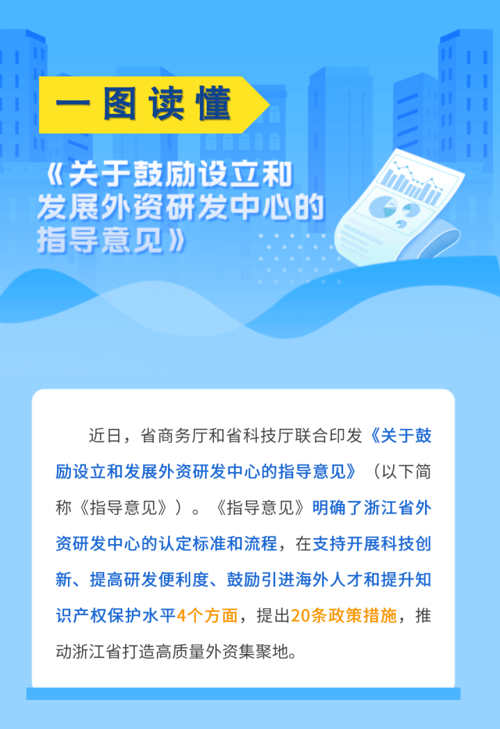 正在打造高能级开放大省的浙江,省商务厅、省科技厅最近也印发《关于鼓励设立和发展外资研发中心的指导意见》(以下简称《指导意见》),从支持开展科技创新、提高研发便利度、鼓励引进海外人才和提升知识产权保护水平等4个方面提出20条措施,推动浙江打造高质量外资集聚地。