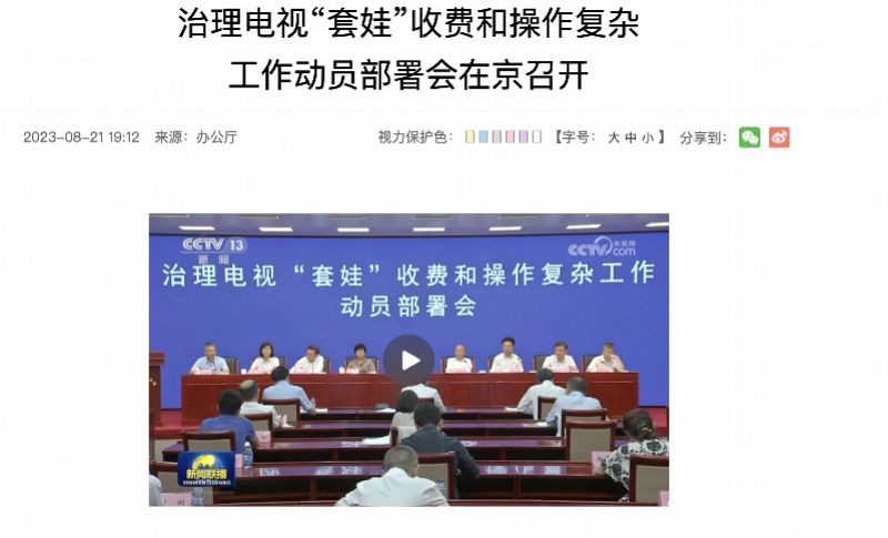 而在国家广播电视总局等部门召开的治理电视“套娃”收费和操作复杂工作动员部署会上也表示,把解决电视“套娃”收费和操作复杂工作,作为一项政治工程、民心工程和系统工程,统筹有线电视、IPTV 和互联网电视三大体系,把握好电视大屏的意识形态属性、公共服务属性和技术产业属性,攻坚克难、协调联动,下大气力解决“看电视难、看电视烦”的问题,切实提升人民群众看电视的满意度,推动广播电视和网络视听高质量发展。