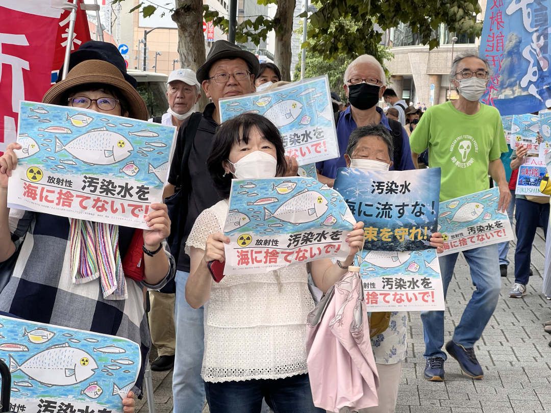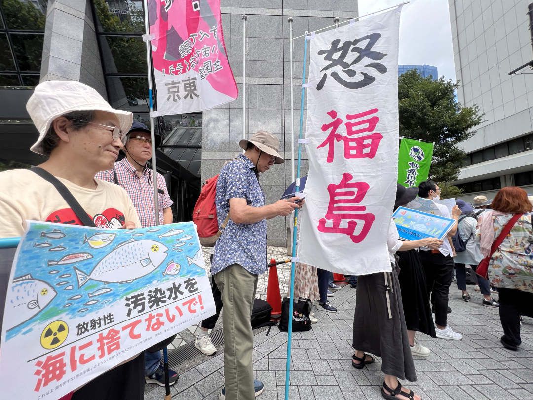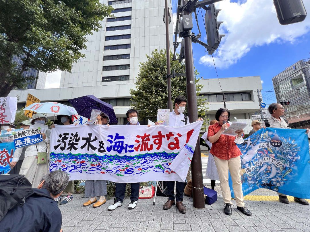 当地时间24日上午,日本多个市民团体聚集在福岛第一核电站运营方东京电力公司总部附近,强烈反对日本政府决定于24日当天启动福岛核污染水排海作业。