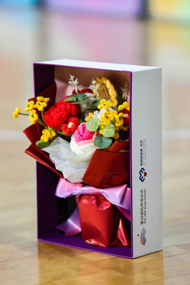 上城区伊家梦享汇的巧手们和爱馨共富工坊的残障人士,在中国美术学院毕业生杨洁、李松慧带领下,共同完成了手工生日花束的制作。这些花束传达着东道主预祝亚运健儿在赛场上一举夺魁的祝福。亚运期间,将作为“亚运会生日花束”展示中国文化。