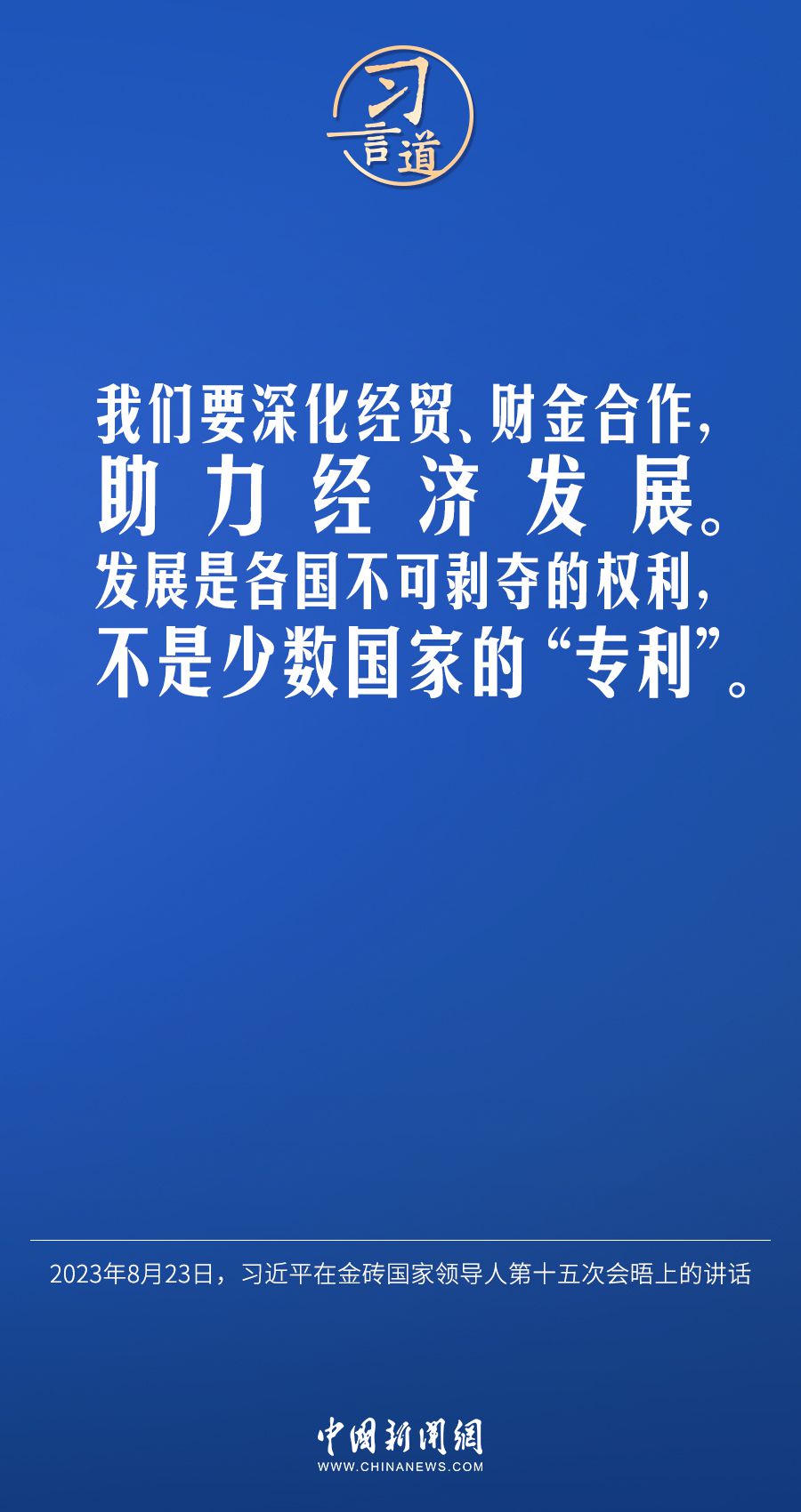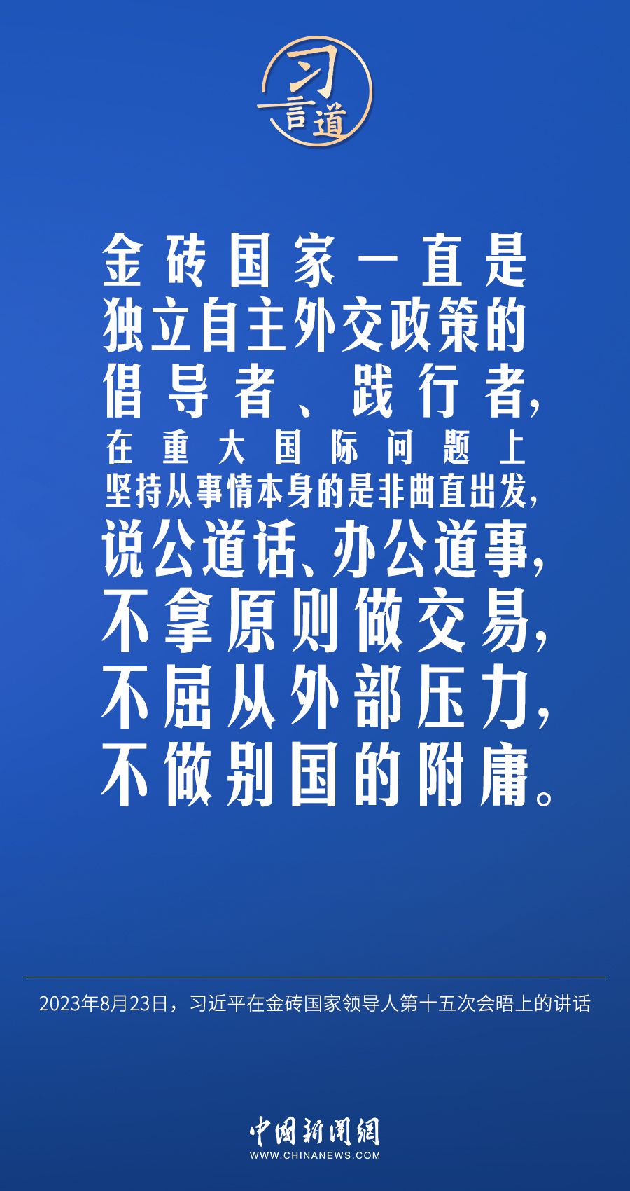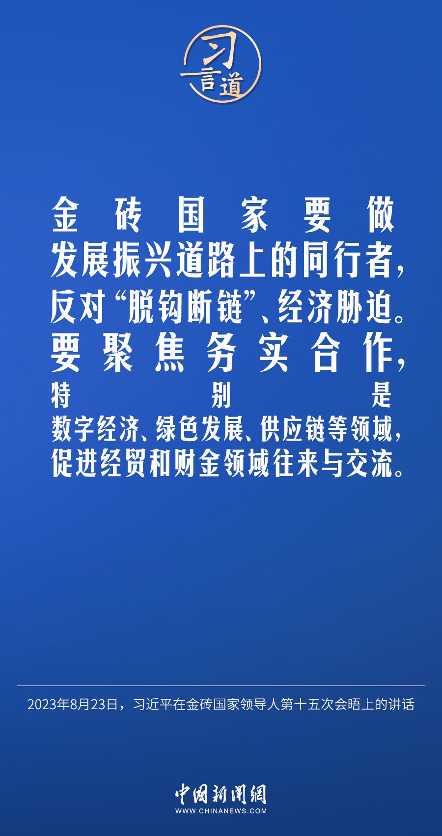 当地时间8月23日,中国国家主席习近平在约翰内斯堡出席金砖国家领导人第十五次会晤并发表重要讲话。习近平指出——