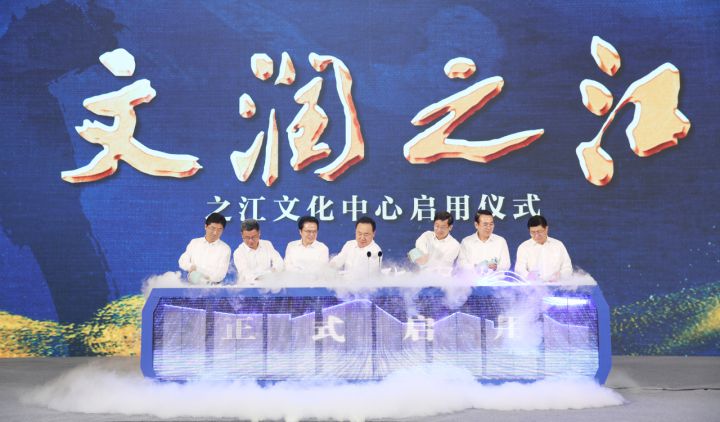 上午10时30分,之江文化中心启用仪式举行。省长王浩宣布之江文化中心正式启用。文化和旅游部副部长饶权、中国作家协会副主席陈彦出席,赵承致辞,暨军民、成岳冲、姚高员参加,胡伟主持。仪式现场,领导手持瓷瓶,将取自浙江4条代表性江河的水汇注一路,标志着浙江文化“航母”在钱塘江畔正式扬帆起航。
