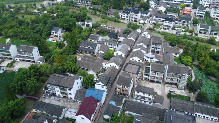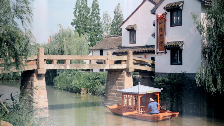 沿着老街的石板路,再走上当年村书记驻足沉思的山塘桥,只见两岸屋舍俨然,绿树掩映之下的山塘河碧波微澜,正如这座古朴的浙北小村庄里蕴藏着的无限生机。