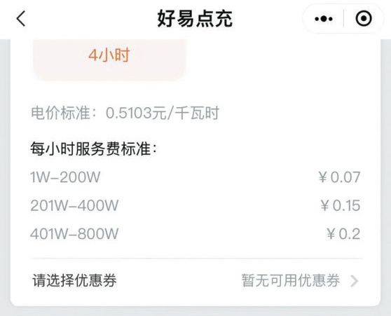同一功率下,“好易点充”在天通苑地区的服务费为每小时0.4元,而在朝阳某小区仅为每小时0.07元。