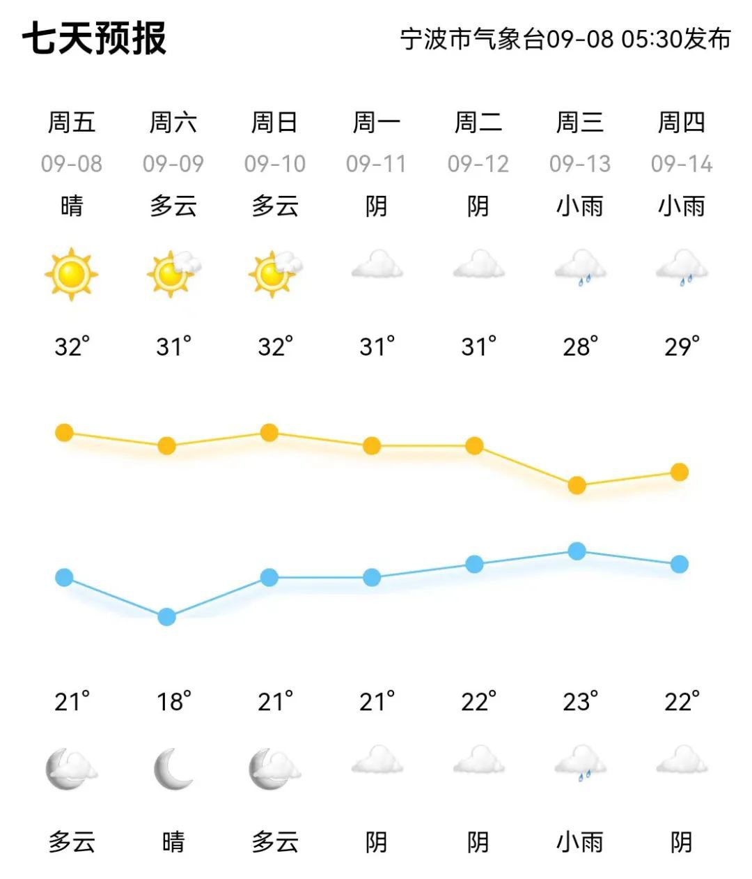 据市气象台6时消息,今天到明天多云。今天到明天东北风3级。今天最高气温31℃~33℃,明天最低气温20℃~22℃。
