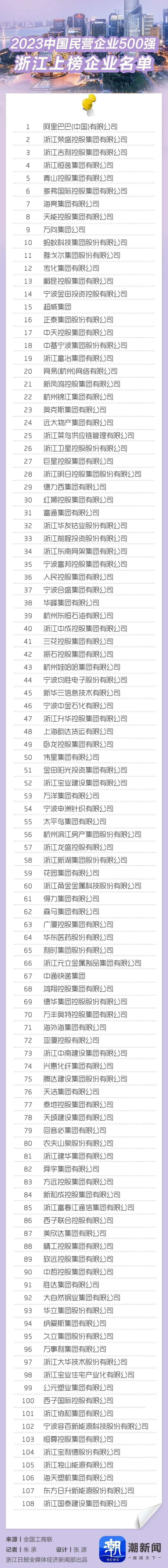 9月12日,“2023中国民营企业500强”放榜,108家浙企上榜,连续25年居全国第一。