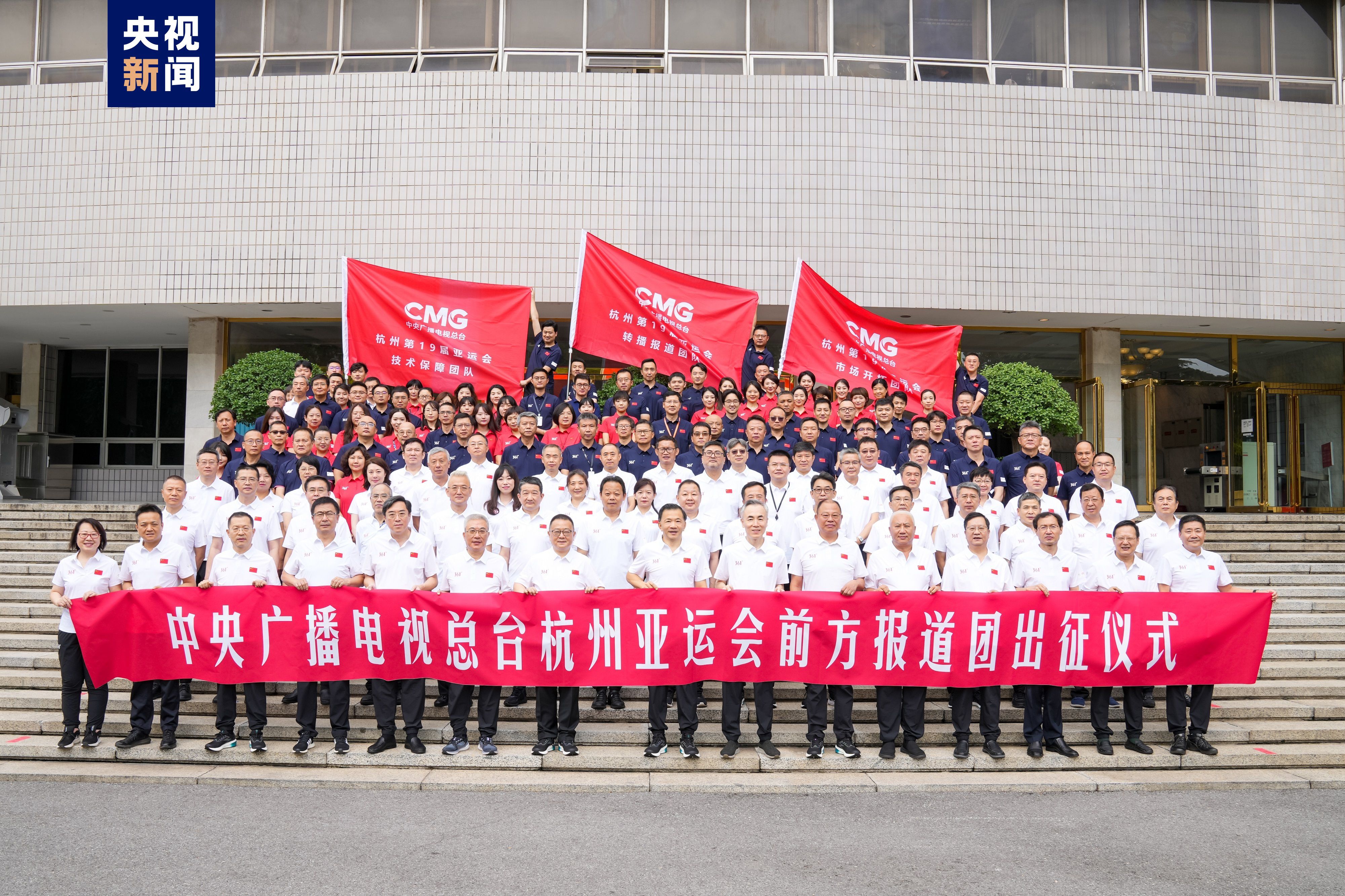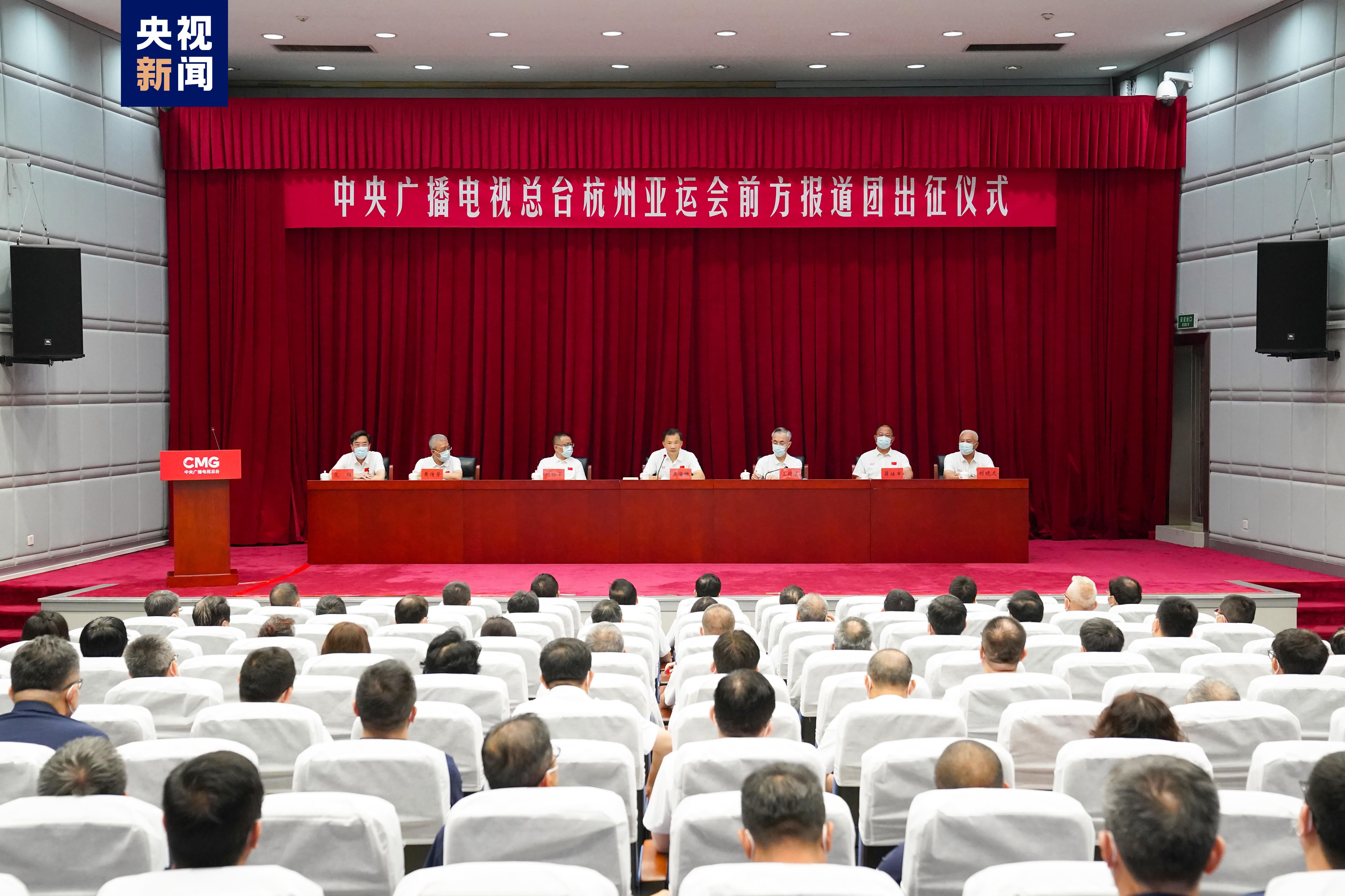 9月11日,中央广播电视总台举行杭州亚运会前方报道团出征仪式,总台将派出总人数为4500余人的工作团队赴杭州开展亚运会转播报道和主转播机构服务工作。中宣部副部长、中央广播电视总台台长慎海雄作动员讲话,并向转播报道团队、技术保障团队、市场开拓团队授旗。总台副台长王晓真主持出征仪式,总台副台长胡劲军出席。