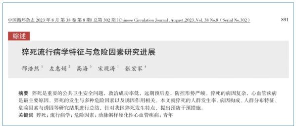 ④邢浩然,左惠娟,高海.猝死流行病学特征与危险因素研究进展.中国循环杂志,2023,38:891-894.DOI:10.3969/j.issn.1000-3614.2023.08.011.