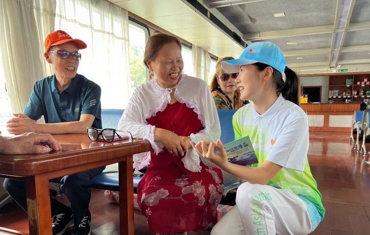 胡松是西子驿·柳浪闻莺亚运青年V站的一名志愿者,也是西湖大学生命科学学院2020级博士生。大学期间,他一直积极参加各类志愿服务活动,尤其是科普支教活动。“之前我很想报名成为一名赛会志愿者,深度参与亚运。无奈学业紧张,时间上不允许,得知V站志愿者招募,我第一时间就向校团委报了名。”胡松兴奋地说。