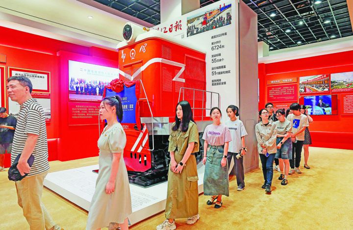 人潮如流。4500平方米的展陈,大气的红色底色一如浙江奋进的20年,亦如人们观展时的激越心情。穿越在文字、照片、视频和实物模型构筑起来的“时空走廊”,综合展区的“伟大擘画”“精彩蝶变”“勇立潮头”三大篇章和地方展区“共谱华章”高潮迭出,扑面而来的是冒着热气、细节满满的20年。