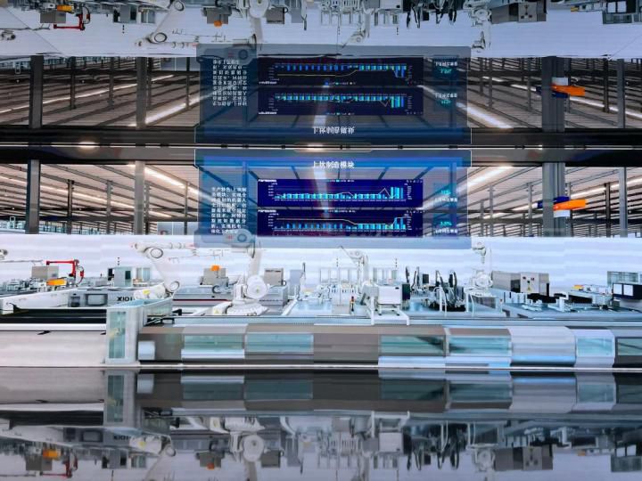 杭州西奥电梯工厂引入数字孪生技术的操作大屏上可以实时看到制造模块的运行状况。新华社记者 张璇 摄