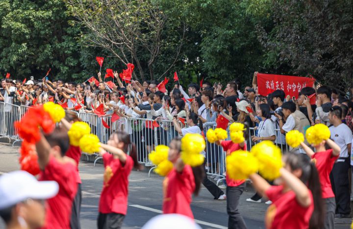 9月17日,杭州亚运会火炬传递金华站现场,市民为火炬手加油喝彩。记者 朱海伟 吕之遥 潘海松 金思成 摄