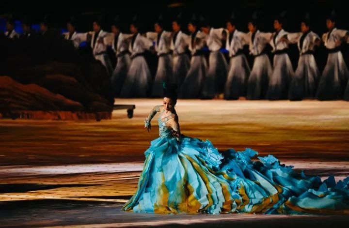 随着五星红旗冉冉升起,蜿蜒群山怀抱的万里长城出现巨幅网幕中。这块超大网幕由9个IMAX荧幕并排构成,却最大程度做到了“隐身”,配合地屏实现了裸眼3D效果,创造出一个神奇的演绎空间,时而是钱塘潮涌,时而是山水田园,时而是人间烟火,之江大地的万千气象跃然眼前。