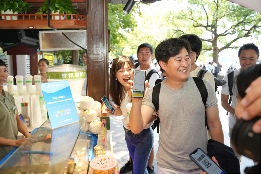 与此同时,还向境外人士推出了直接使用境外电子钱包的移动支付服务方案。包含Alipay HK、KaKao Pay等在内的共10款海外电子钱包,通过蚂蚁集团旗下的Alipay+跨境数字支付和营销解决方案,既可以使用本地的电子钱包,享受中国便利的移动支付。总计覆盖东南亚和东亚超过1.75亿人口。