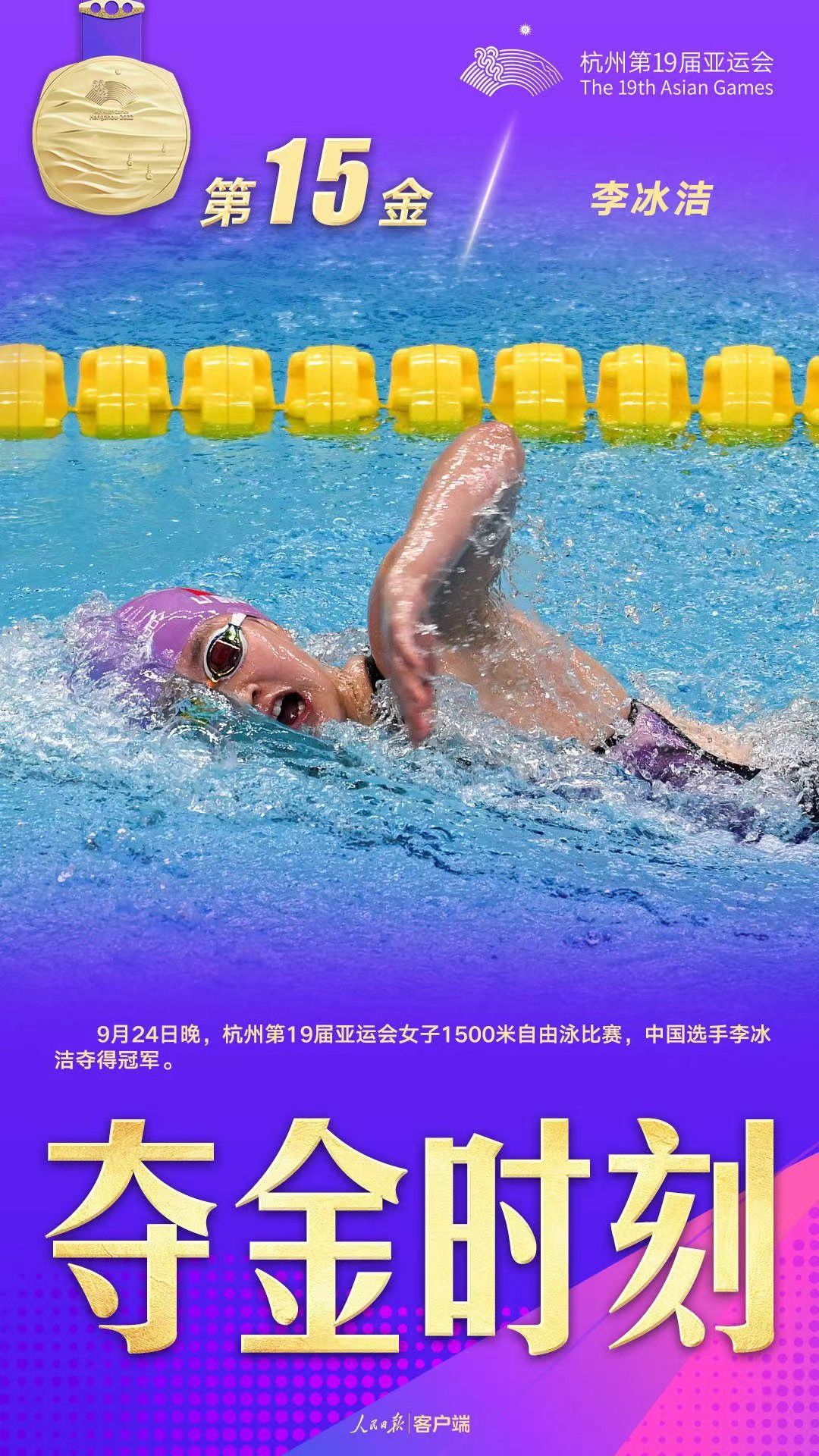 在9月24日晚进行的杭州亚运会女子1500米自由泳快组比赛中,中国队选手李冰洁夺得冠军。中国队另一名选手、15岁的小将高唯中获得银牌。