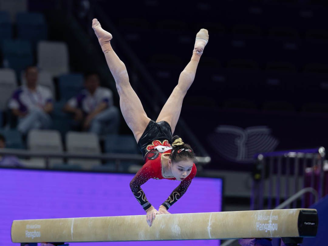 9月25日,杭州亚运会体操女子资格赛暨团体决赛在黄龙体育中心体育馆打响。由张欣怡、左彤、章瑾、虞琳敏、唐茜靖组成的中国队赢得冠军,成功卫冕。中国体操女团实现亚运13连冠。