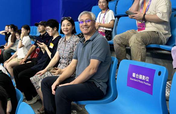 比赛最后冲刺阶段,叶诗文父母起立为女儿拍手加油!眼中满满的骄傲。