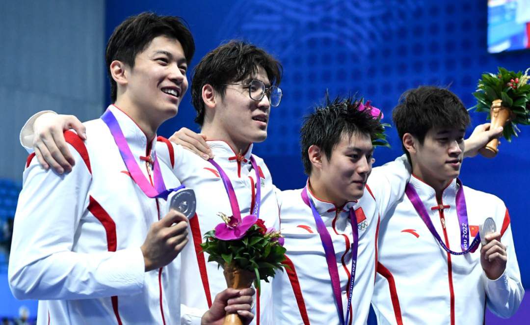 男子4x200米自由泳接力决赛,由汪顺、牛广盛、王浩宇、潘展乐组成的中国队以7分03秒40的成绩获得银牌,韩国队7分01秒73打破亚洲纪录获得金牌。