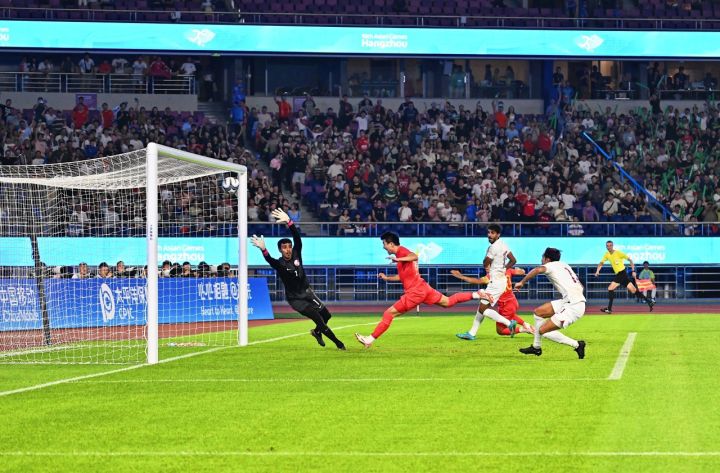 北京时间9月27日晚19:30,亚运会男足1/8决赛,中国队坐镇杭州黄龙体育场对阵卡塔尔队。上半场,开场仅仅3分钟,戴伟浚中场灵巧分球,方昊传中送助攻,陶强龙头球为球队破门。下半场,比赛第57分钟,方昊接高天意传球过掉门将,空门未进。最终中国队1∶0战胜卡塔尔,八强赛将迎战韩国队。