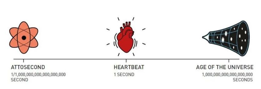 一阿秒如此短暂,以至于一秒包含的阿秒数量与宇宙自138亿年前诞生以来经历的秒的数量一样多。更贴切一点,我们可以想象,一束光从房间的一端到达对面墙上需要一百亿阿秒。